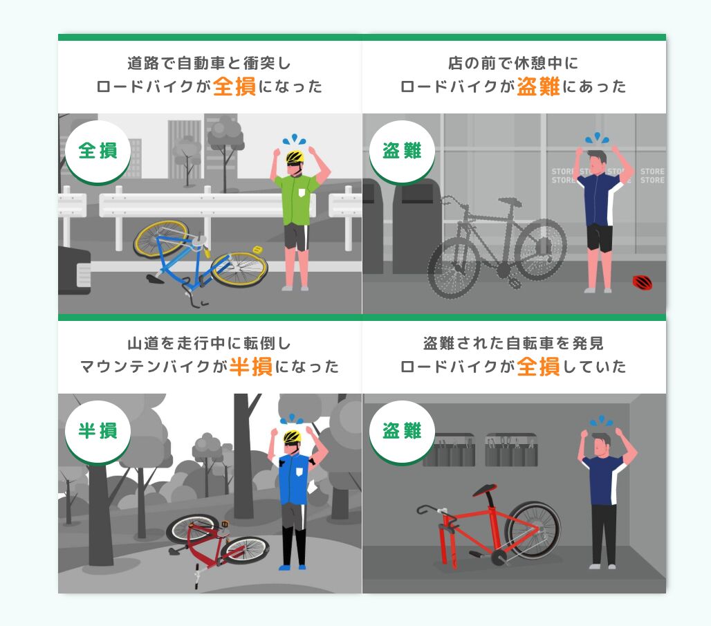 • 盗難だけでなく、事故によるロードバイクの破損にも対応